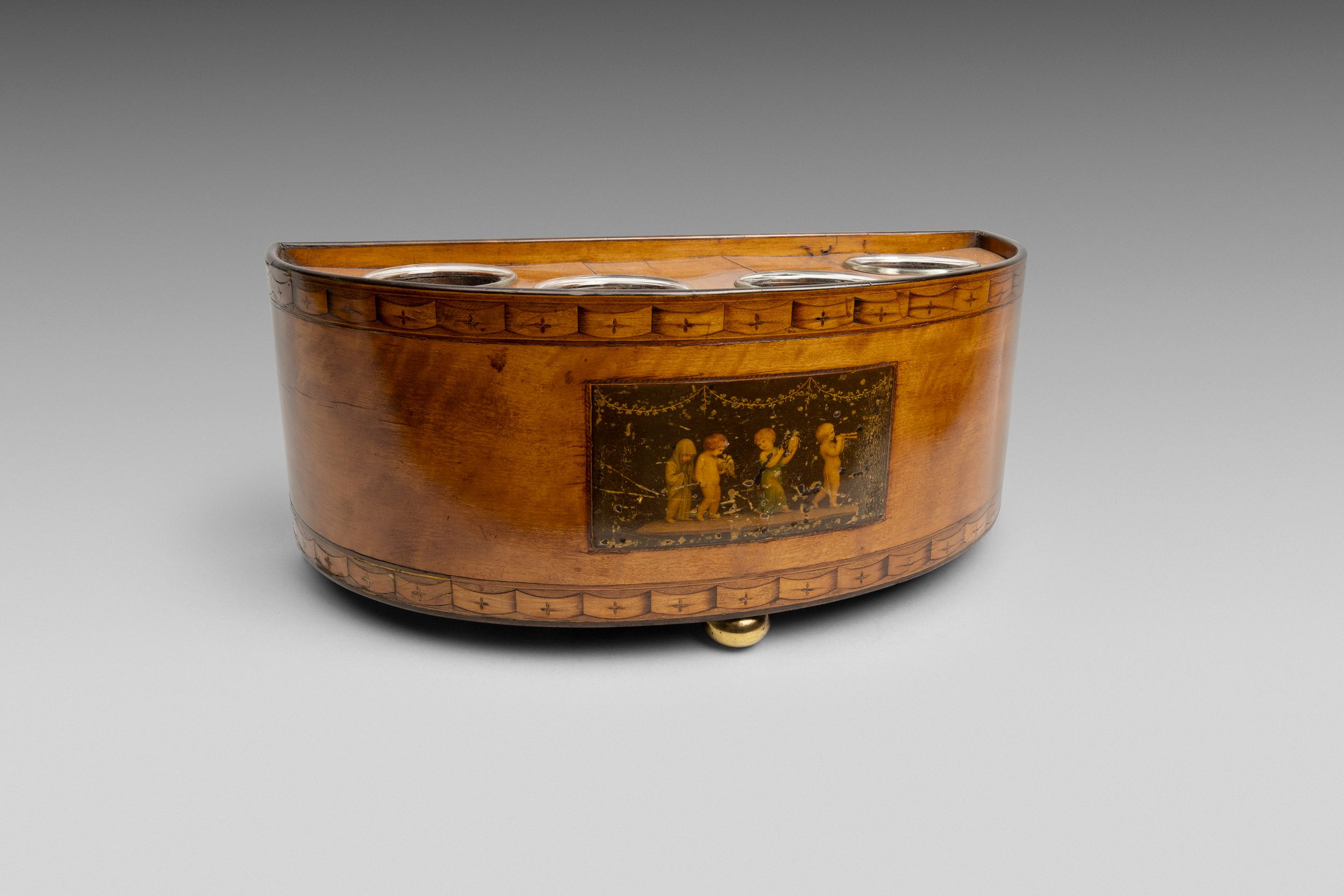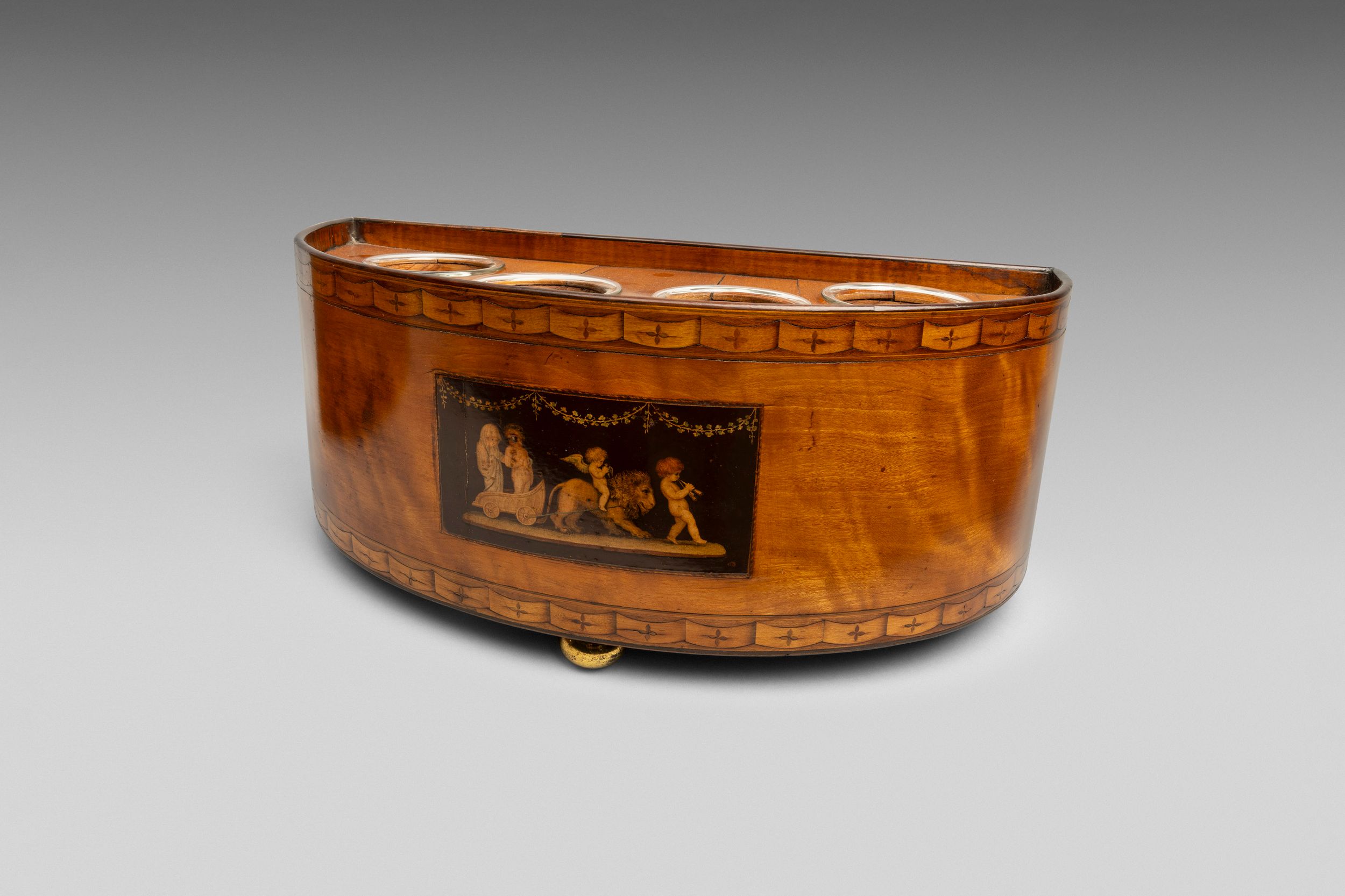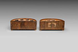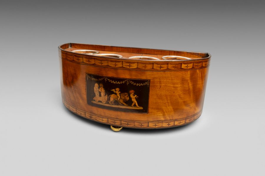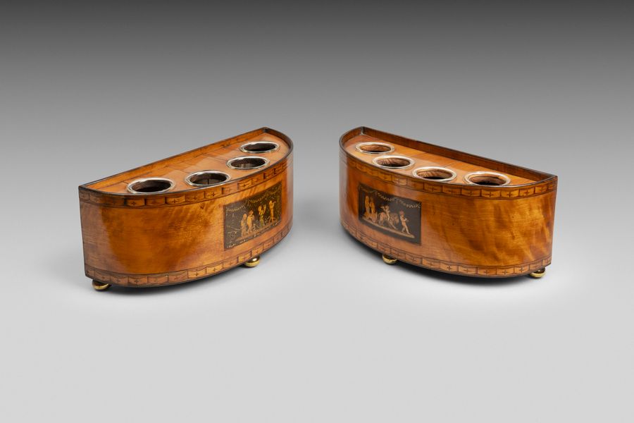 A fine pair of satinwood veneered elliptical bulb containers.