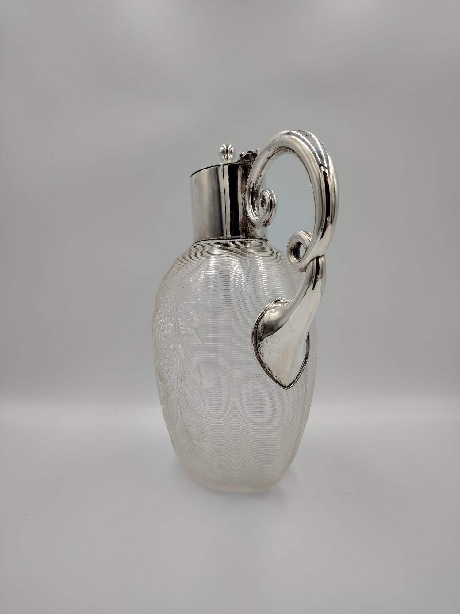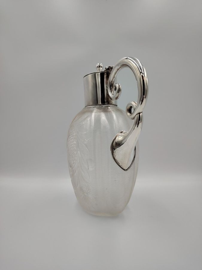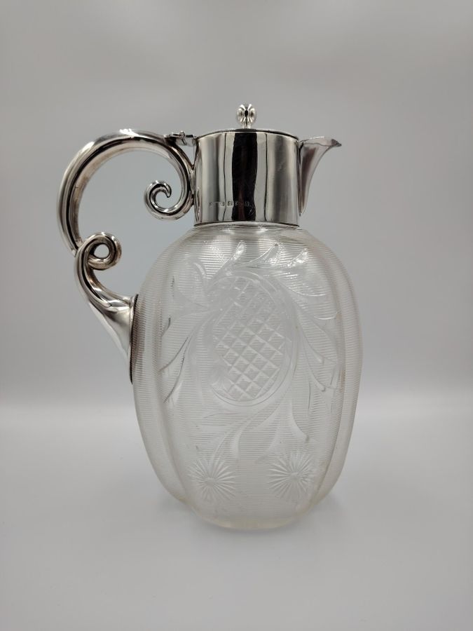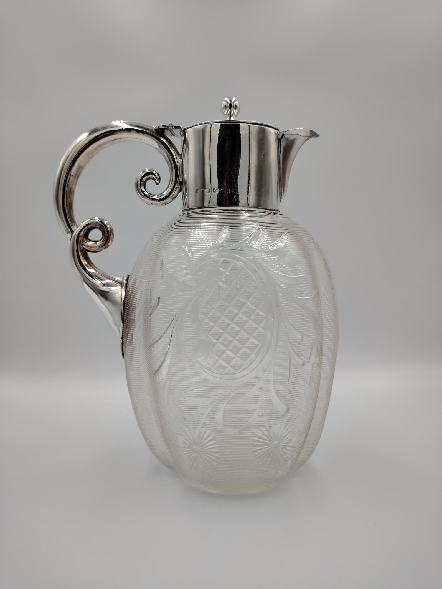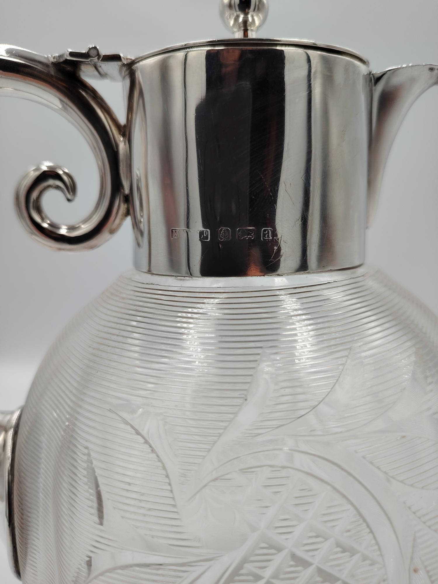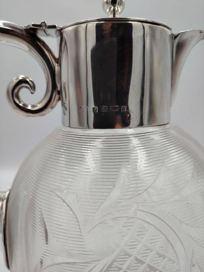 An exceptional quality Edwardian cut glass claret jug with sterling silver handle and top section.